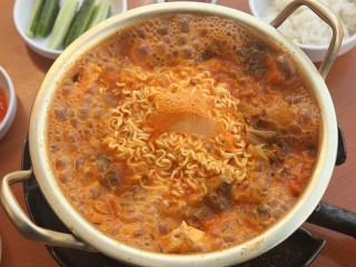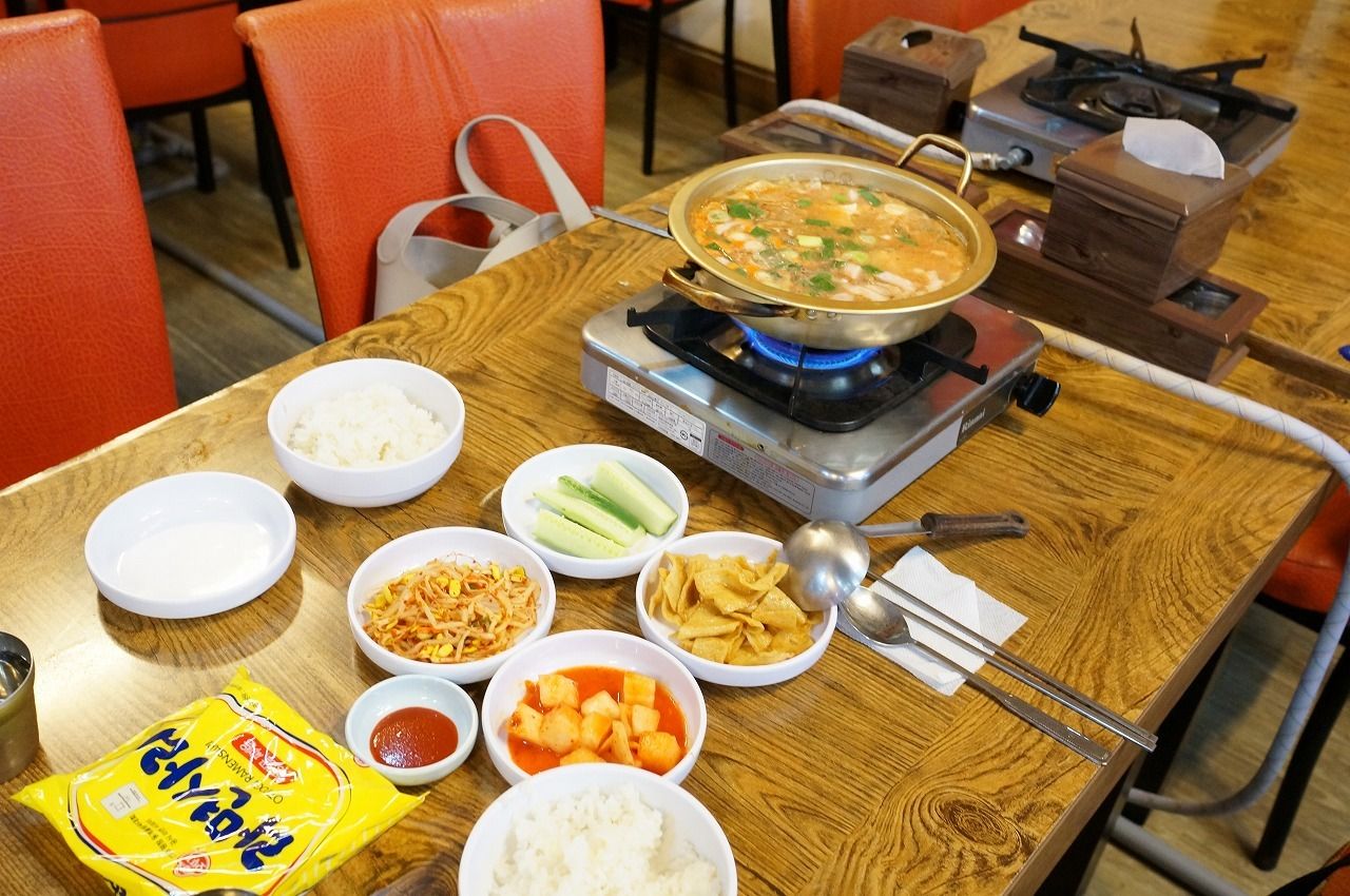 キムチチゲのおすすめの食べ方としては「ラーメンサリもマストで入れて」と鍋などのシメで入れる韓国のインスタント麺を必ず入れるようで